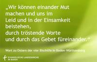 Freiburg/Karlsruhe/Rottenburg/Stuttgart, (09.04.2020). Mit einer gemeinsamen Botschaft der Hoffnung wenden sich die vier Kirchen in Baden-Württemberg an die Christinnen und Christen, die im Südwesten das Osterfest begehen.